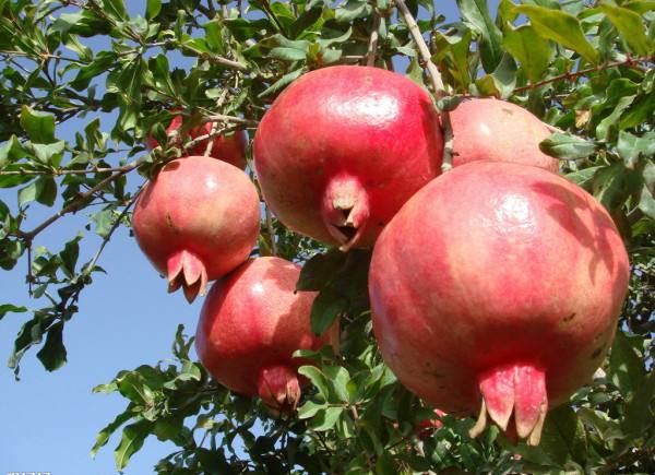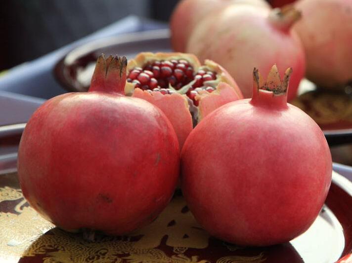 甜石榴种类更加丰富,其中有名的当属“三白甜”石榴,也就是传说中的“贵妃石榴”。因其花瓣、果皮和籽粒皆为白色、汁液甜美而得名。“三白甜”石榴果皮薄、籽软汁甜,又被称为“冰糖石榴”,产量及其少,其中的上品更是罕有,故一果难求,价格十分昂贵,一般都是送亲戚朋友的;天红蛋是甜石榴中的一种,色泽艳丽,味道酸甜,只是籽稍硬些;净皮甜是甜石榴中的上品,顾名思义,果面干净漂亮,籽粒饱满,甜美多汁,受大众欢迎,因而销量大的就是这种了。